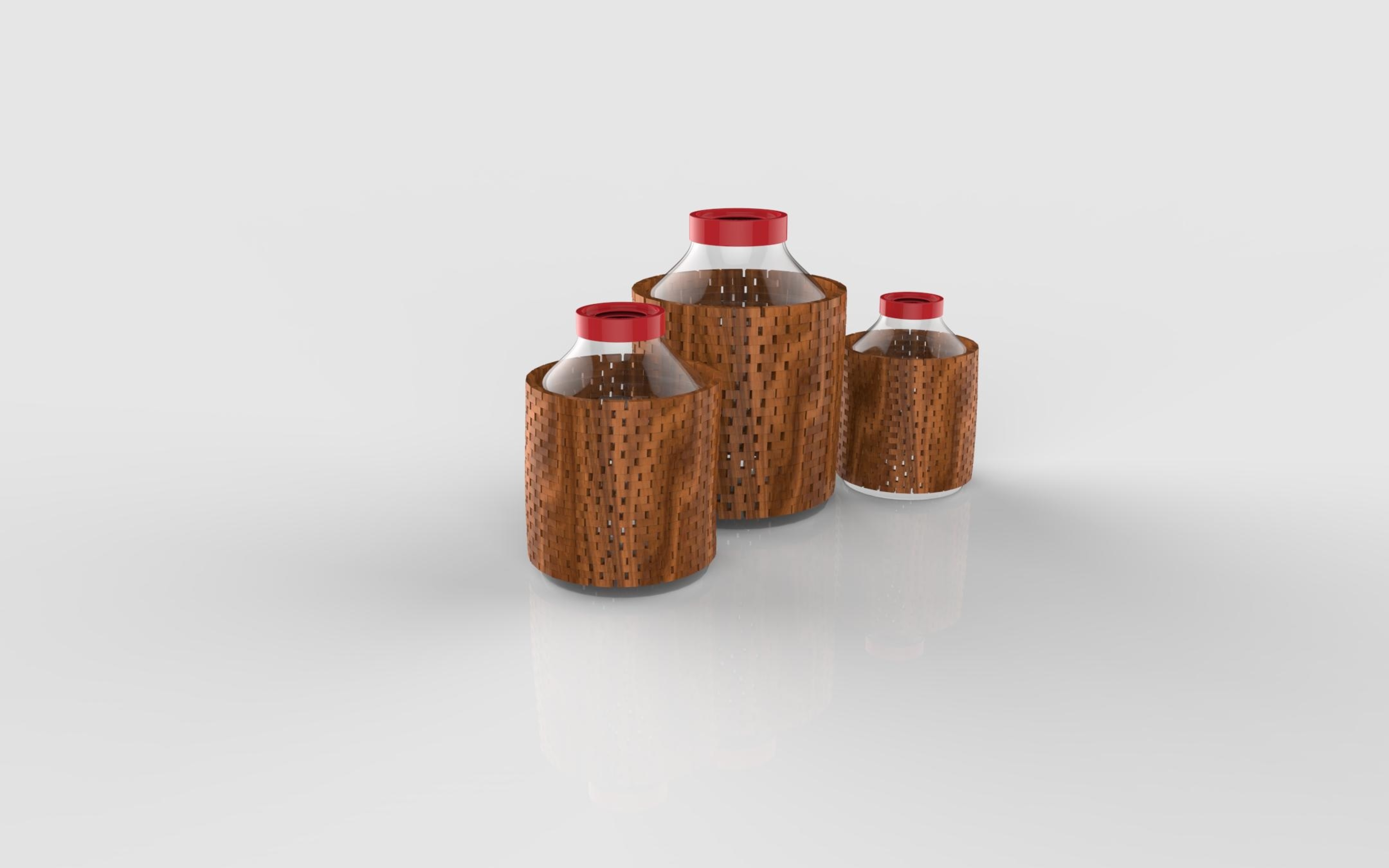 Обои Стеклянные баллоны в деревянном каркасе 3д графика