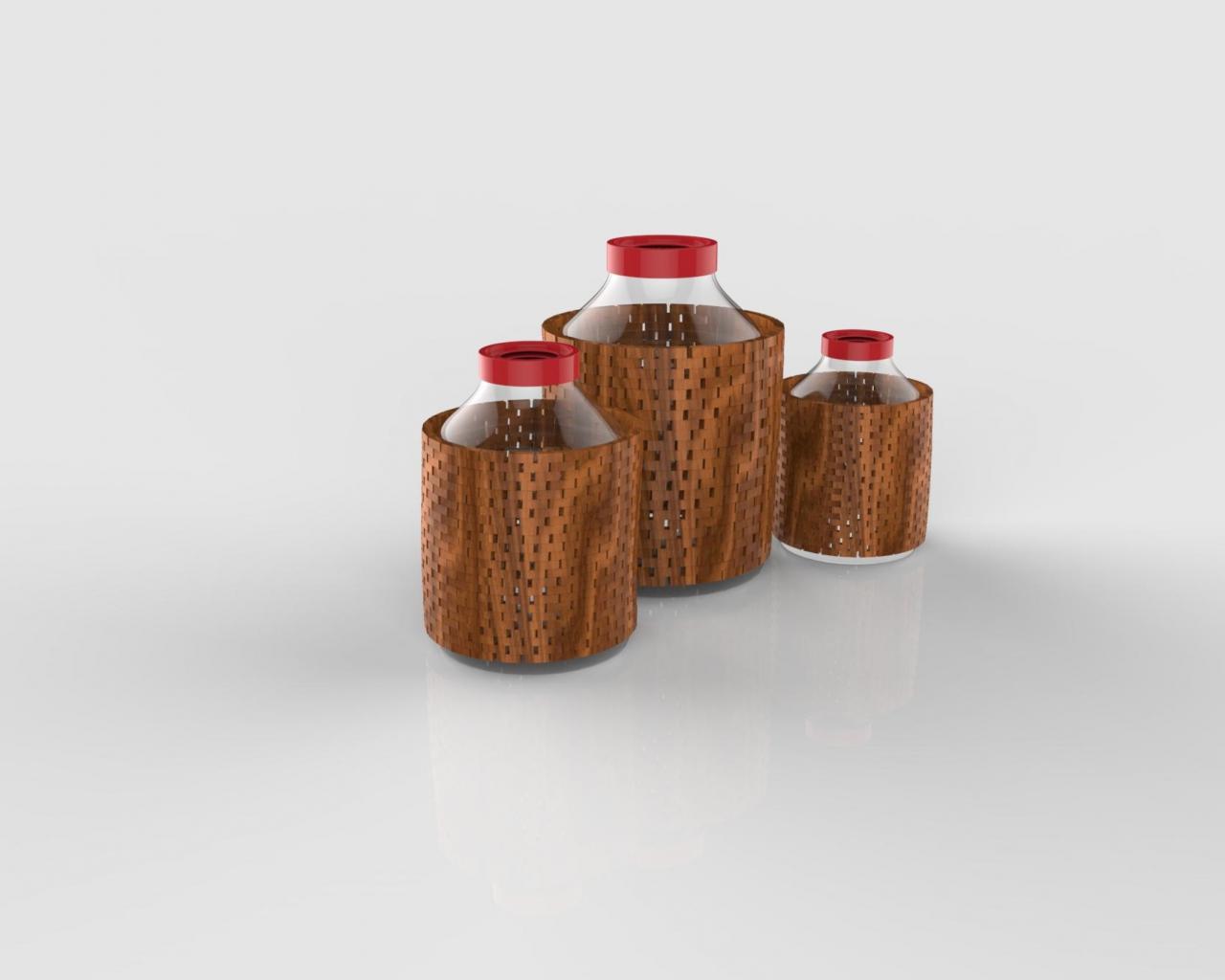 Обои Стеклянные баллоны в деревянном каркасе 3д графика