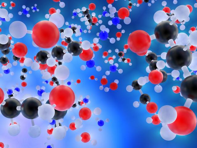 Обои Разноцветные молекулы на голубом фоне