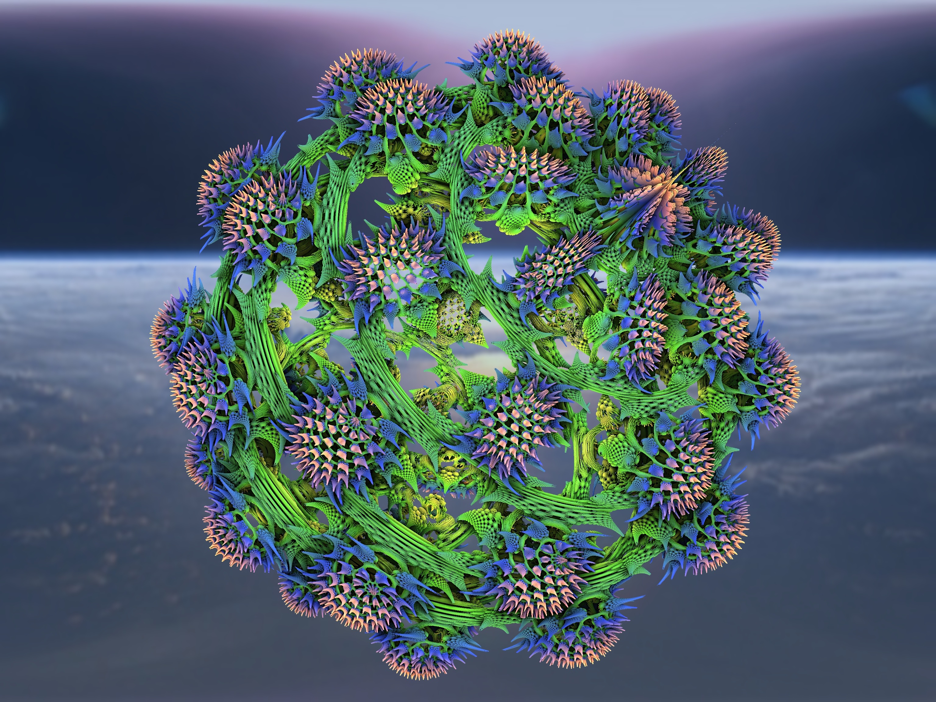 Обои Большой колючий фрактальный цветок на сером фоне
