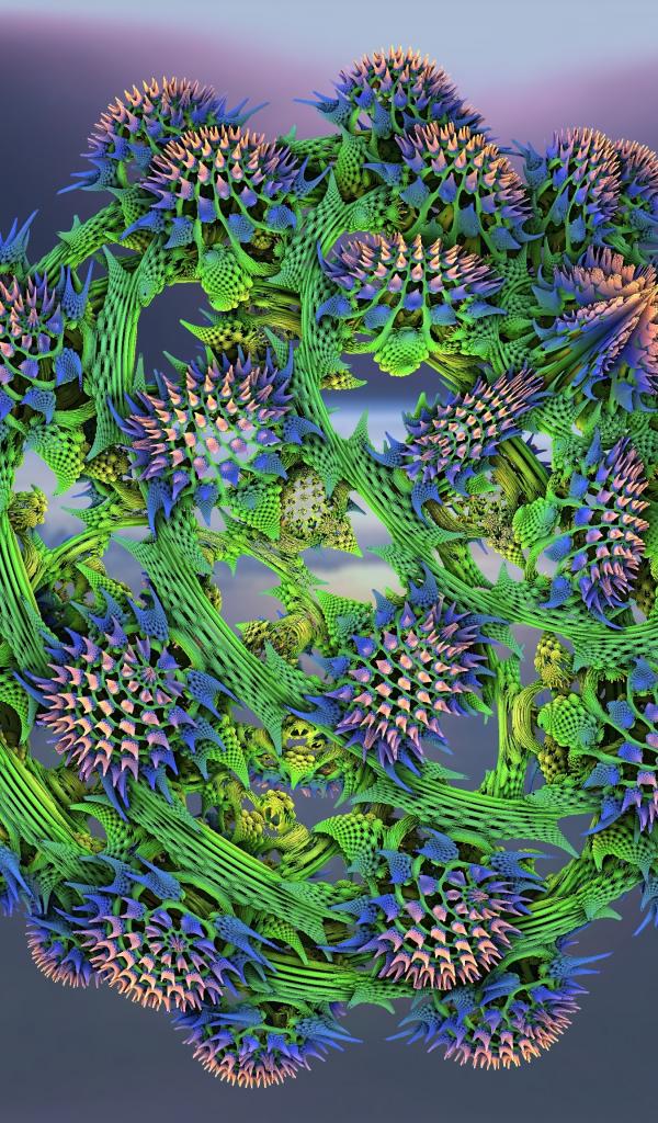 Обои Большой колючий фрактальный цветок на сером фоне