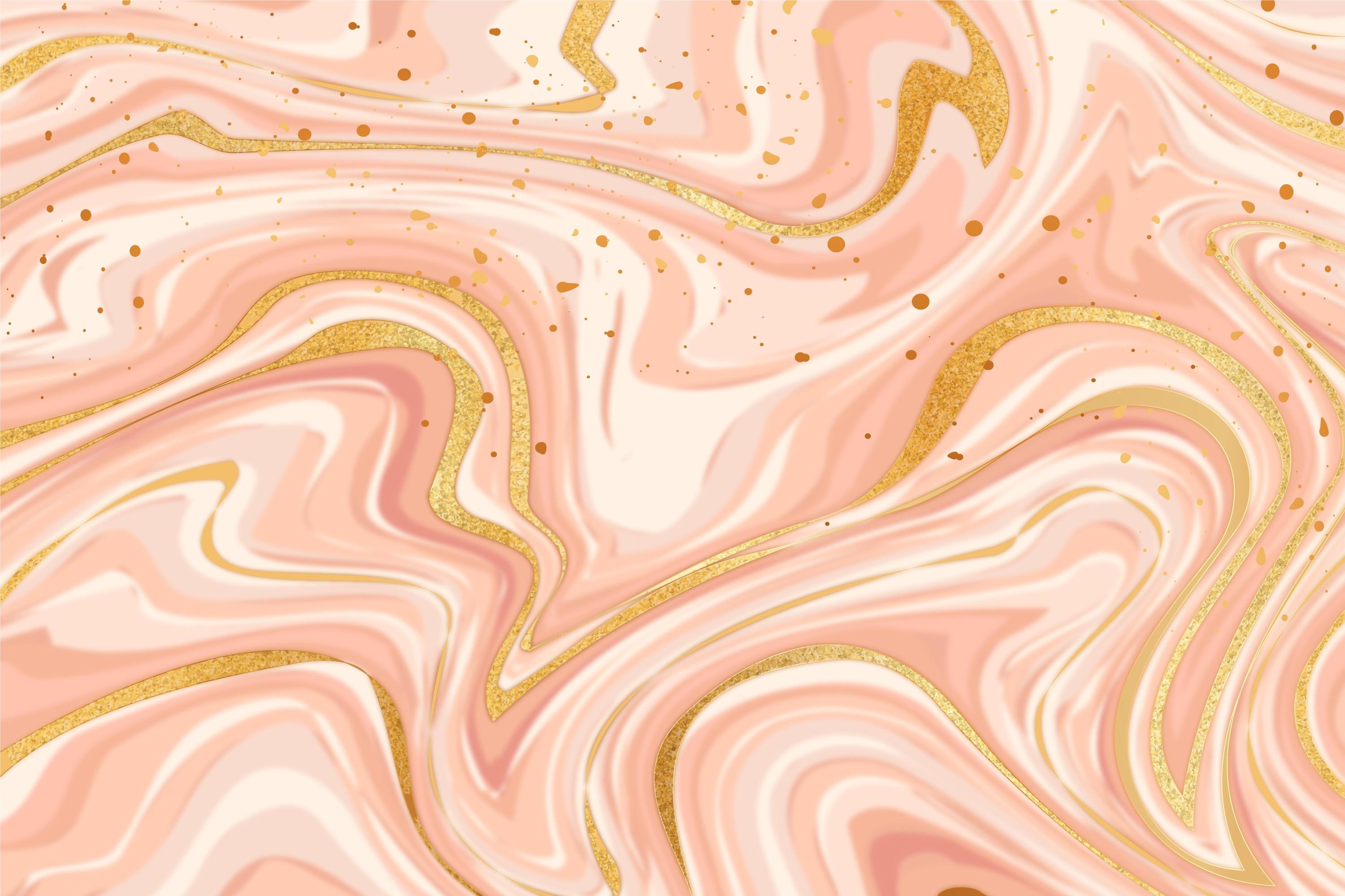 Обои Размытые волны розовой, белой и золотой краски