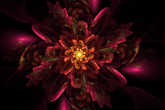 Обои Красный необычный фрактальный рисунок со свечением
