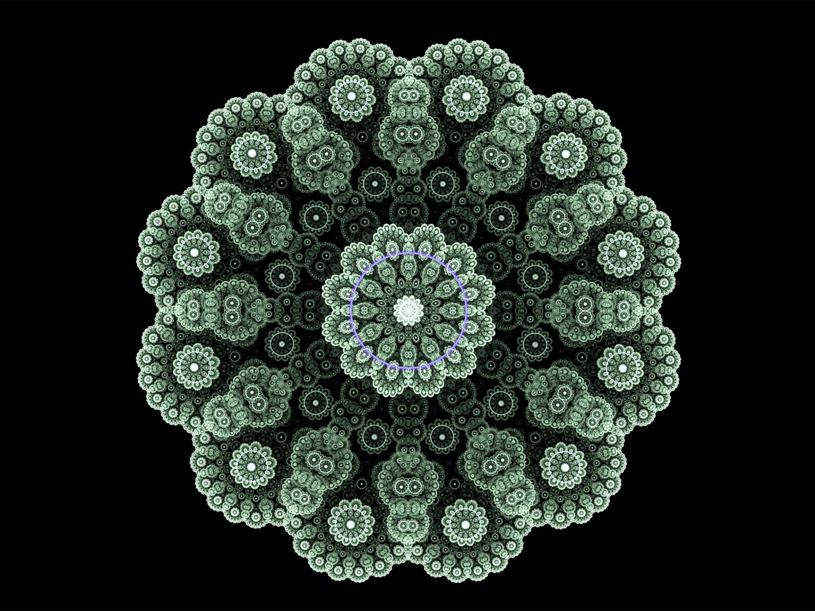 Обои Кружевной зеленый фрактальный цветок на черном фоне
