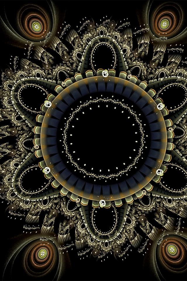 Обои Красивый фрактальный рисунок мандала на черном фоне