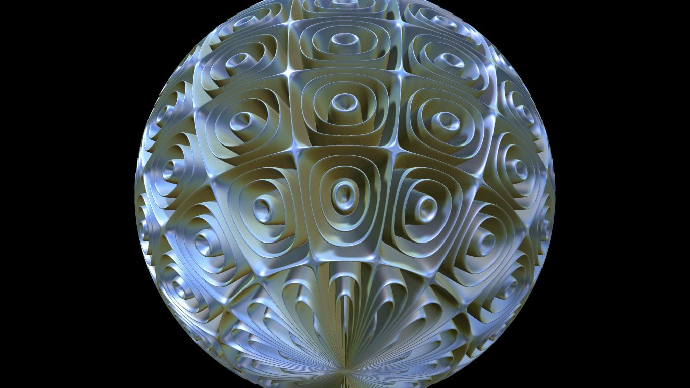 Обои Круглый фрактальный рисунок из спиралей на черном фоне
