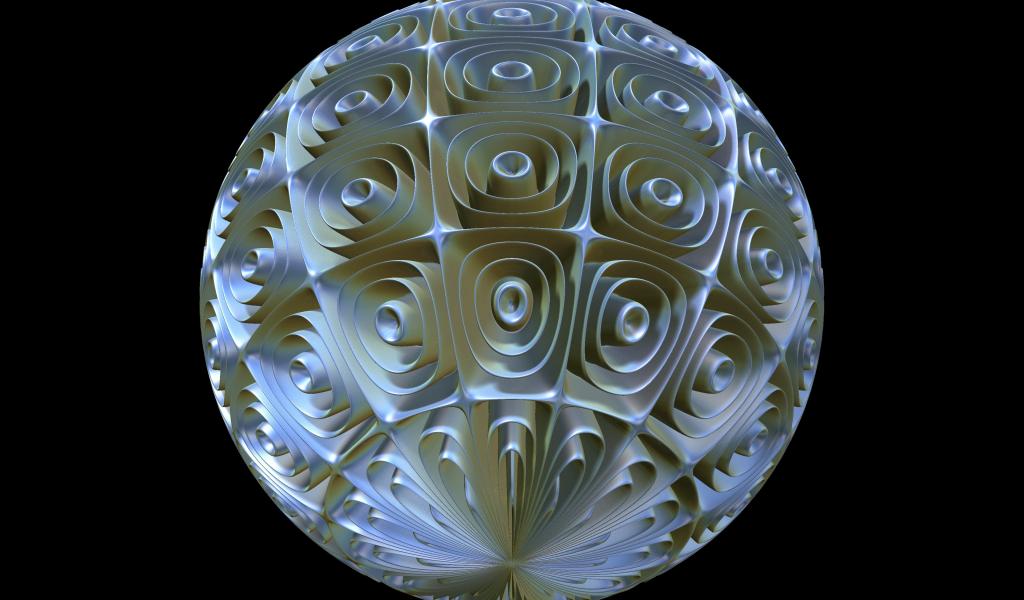 Обои Круглый фрактальный рисунок из спиралей на черном фоне