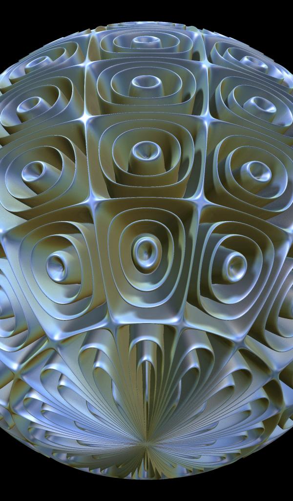Обои Круглый фрактальный рисунок из спиралей на черном фоне