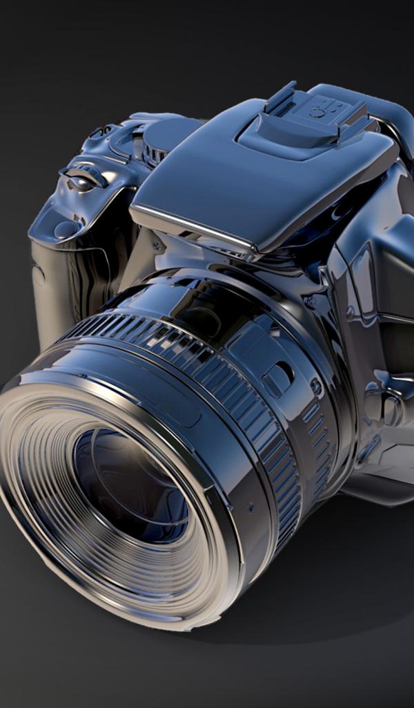Обои Фотоаппарат canon на черном фоне 3д графика