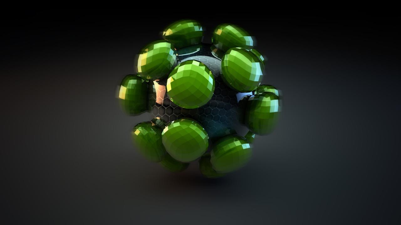 Обои Сфера с зелеными вставками на сером фоне 3д