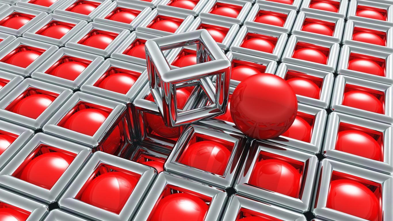 Обои Хромированные кубы с красными шариками