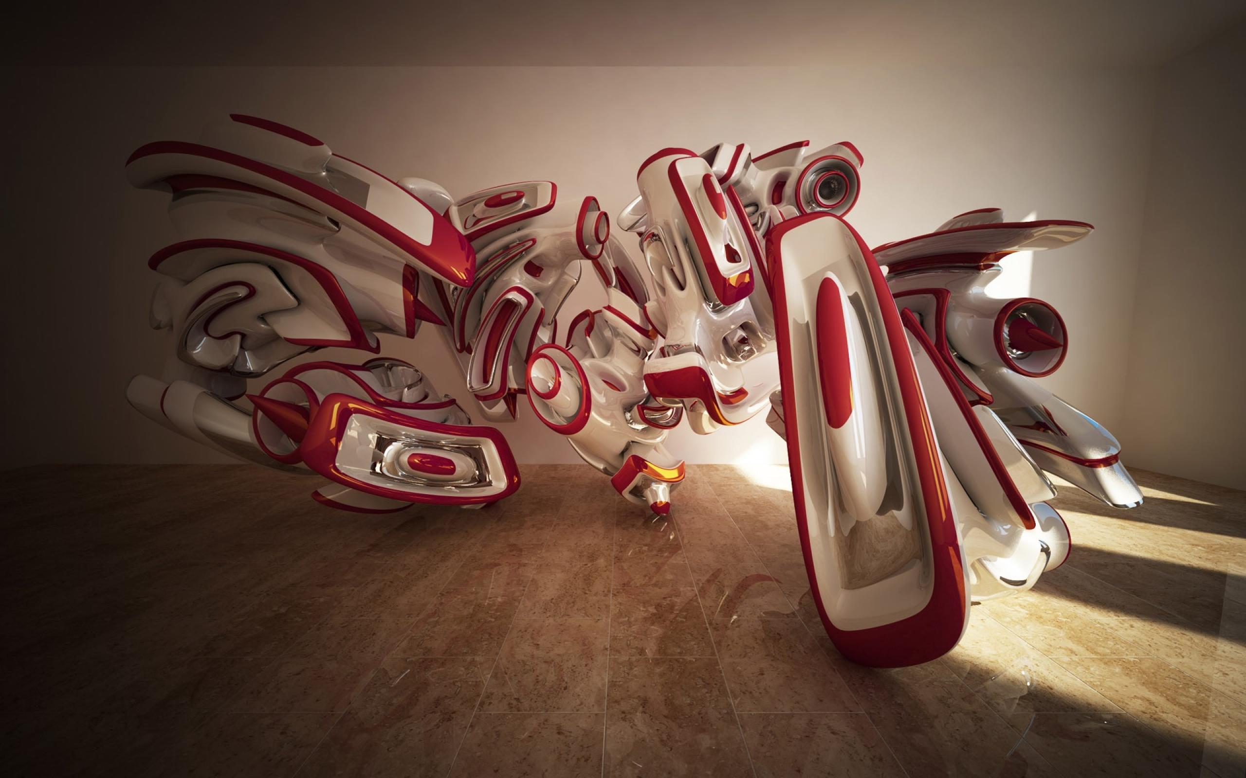 Обои Красно белые 3Д структуры в комнате