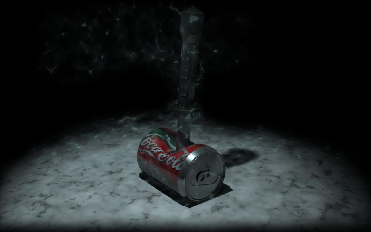 Обои Банка Колы пробита ножем