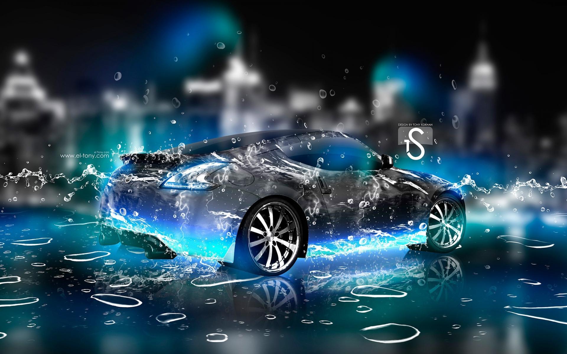 Обои Ниссан в цифровых каплях воды