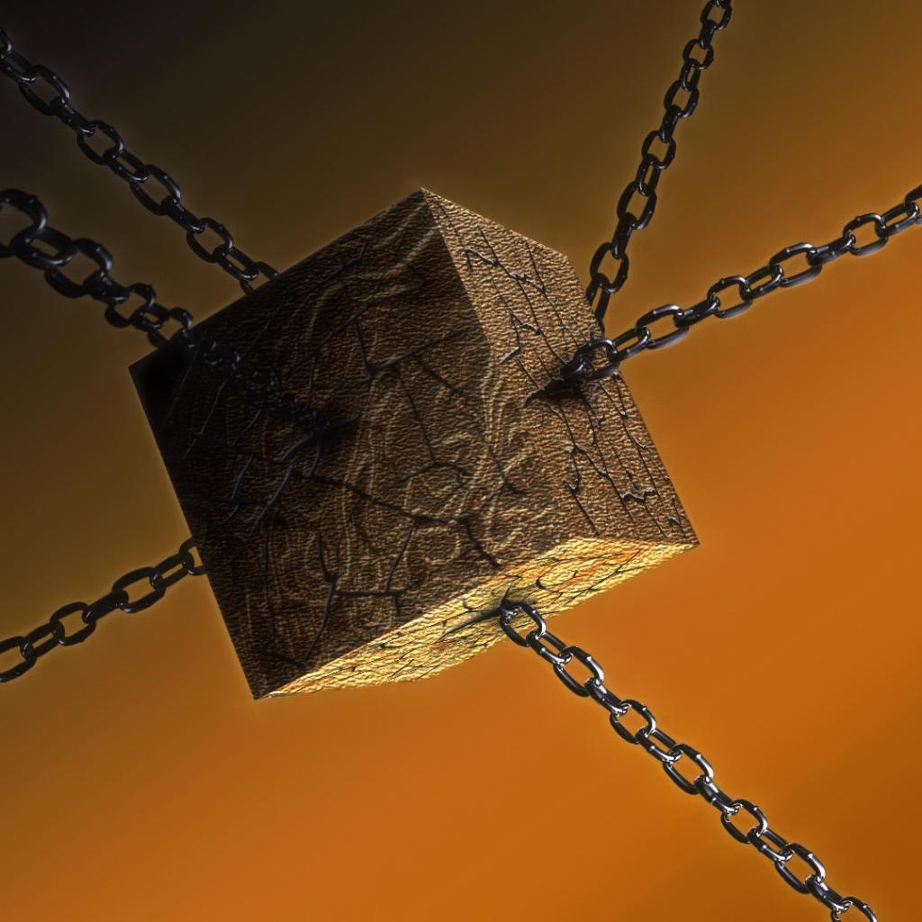 Обои Деревянный куб на цепях