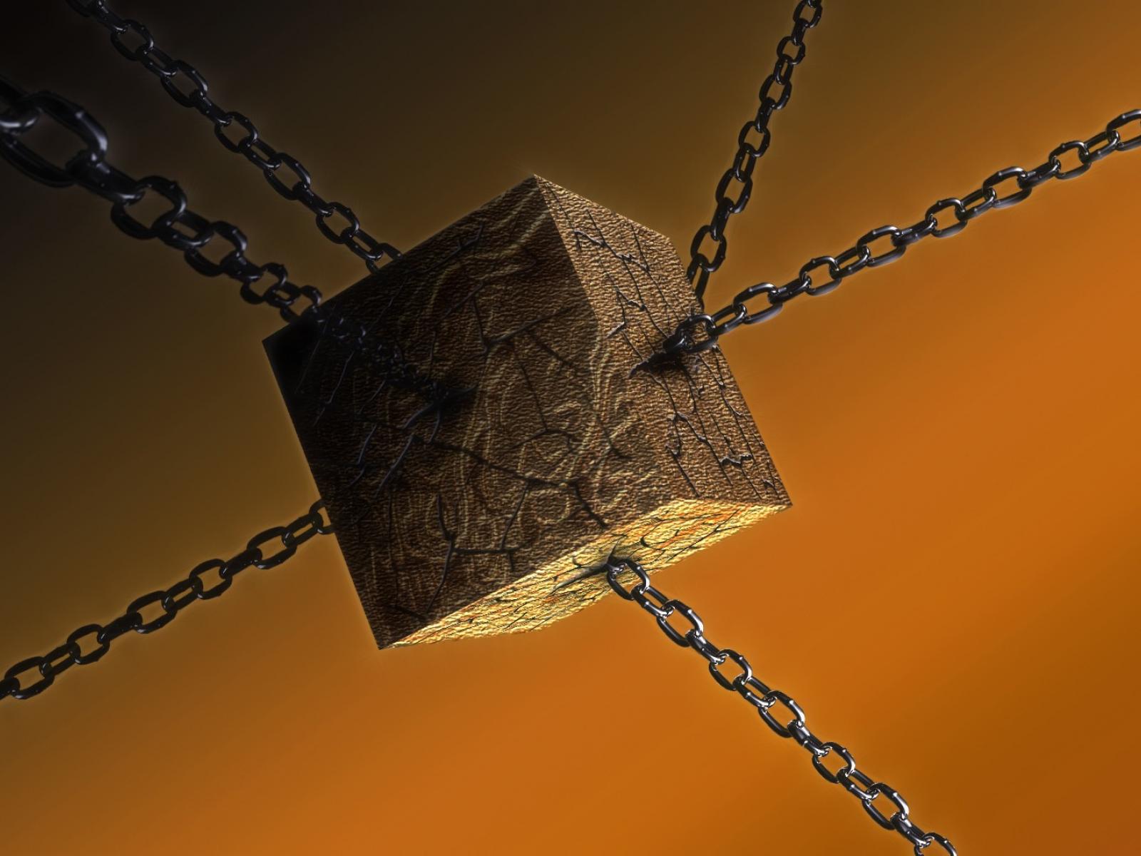 Обои Деревянный куб на цепях