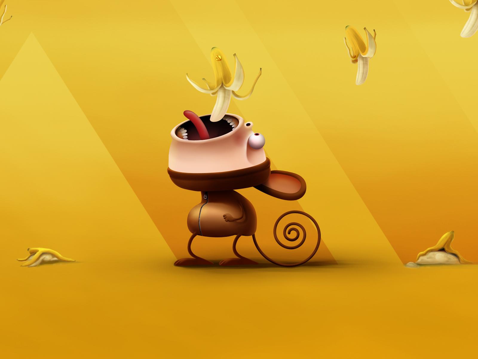 Обои Обезьянка и бананы