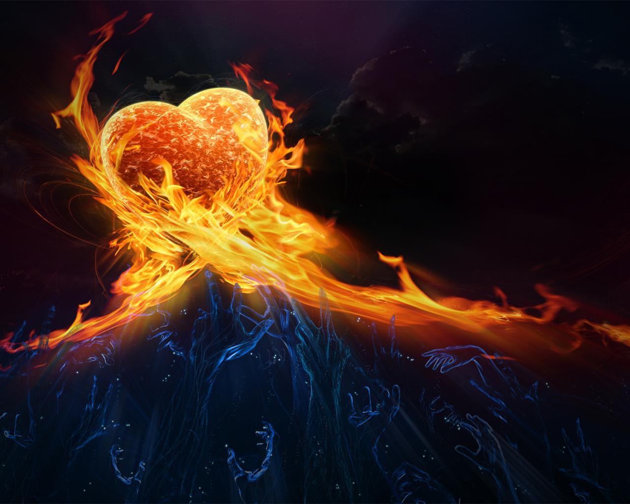 Обои Пламя, лед, сердце