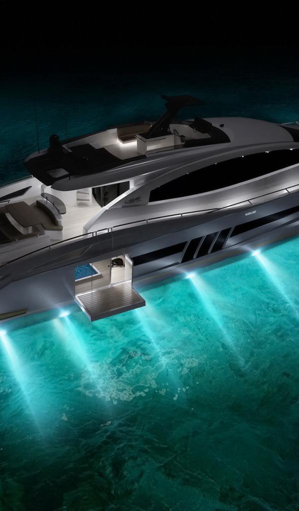 Обои Яхта освещает дно моря