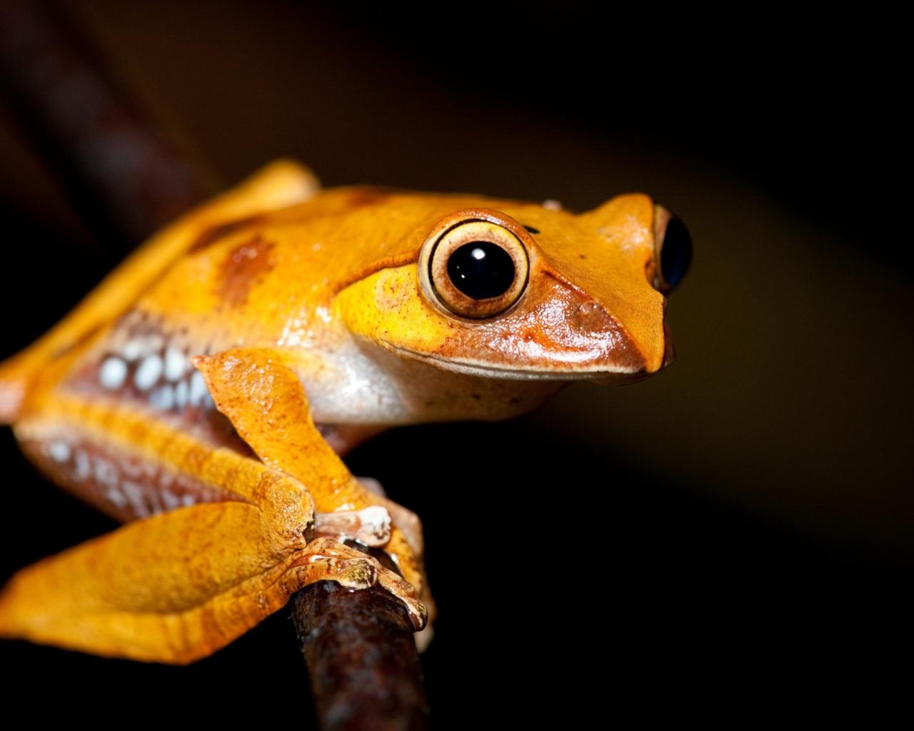 Обои Желтая лягушка на ветке