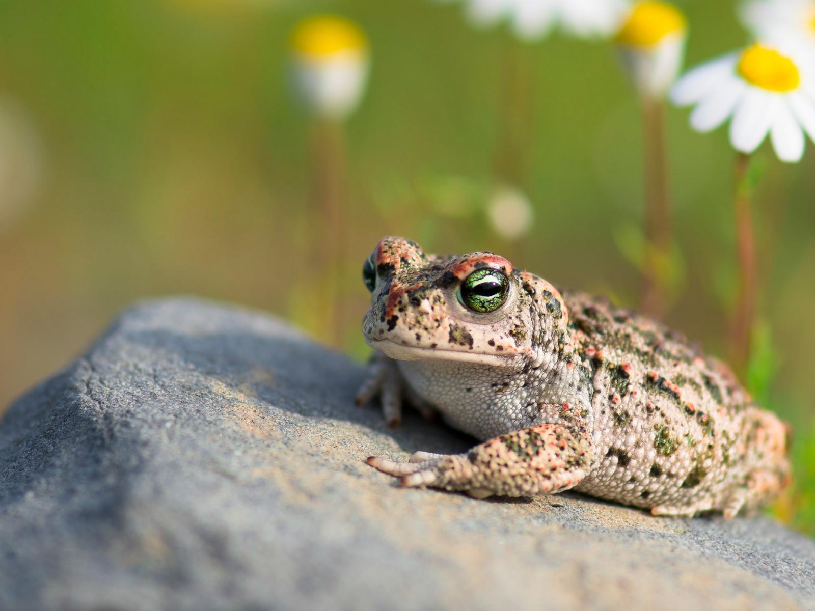 Обои Большая жаба сидит на камне на солнце