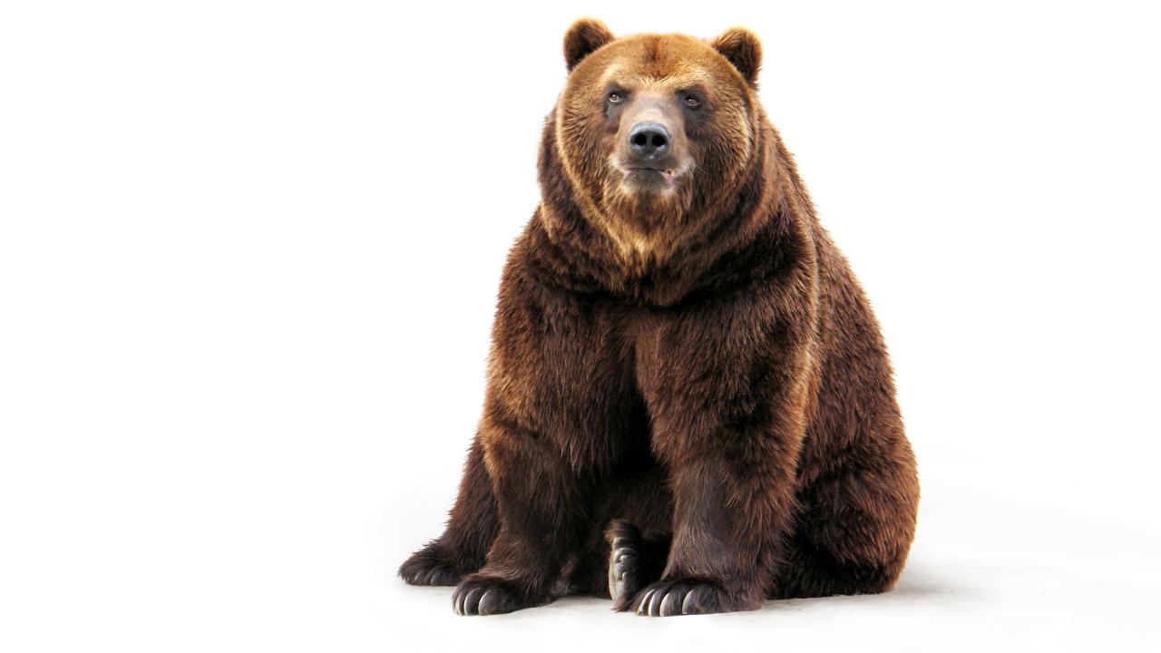 Обои Большой бурый медведь на белом фоне