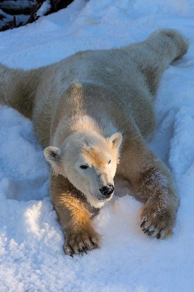 Обои Белый медведь радуется белому снегу зимой