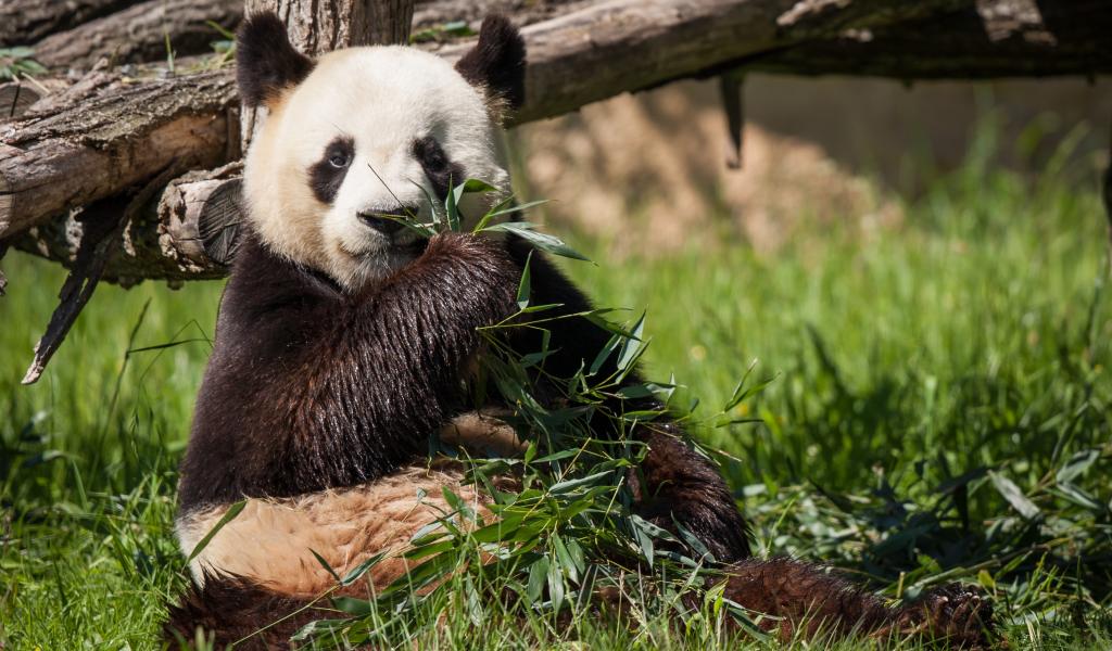Обои Мокрый медведь панда ест зеленые листья