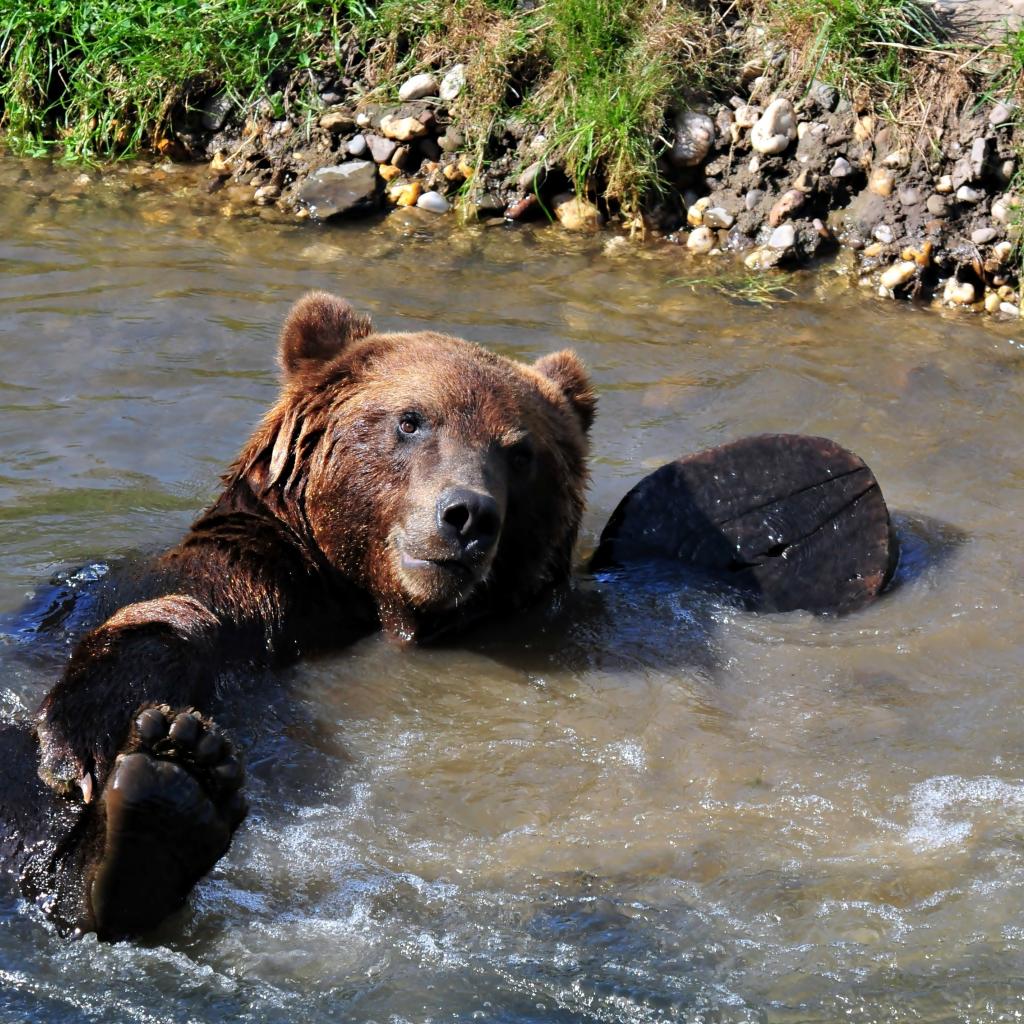 Обои Большой бурый медведь купается в ручье