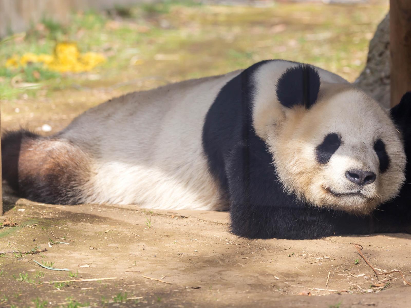 Обои Большая панда спит в зоопарке