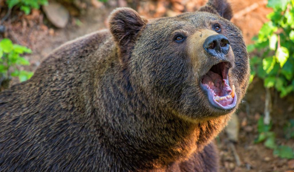 Обои Большой бурый медведь с открытой пастью