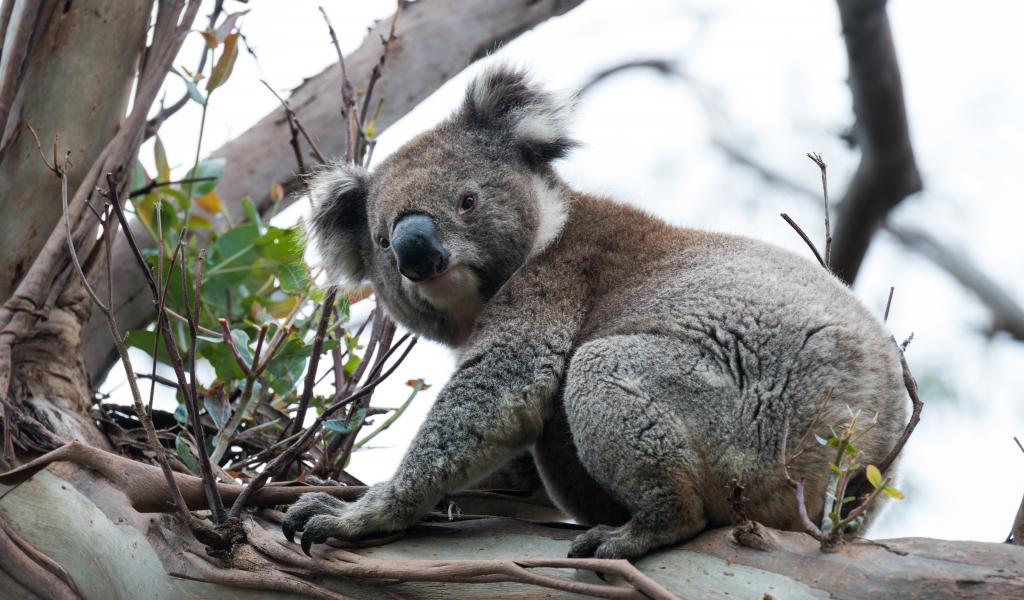 Обои Большая коала сидит на ветке дерева
