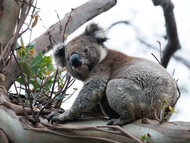 Обои Большая коала сидит на ветке дерева