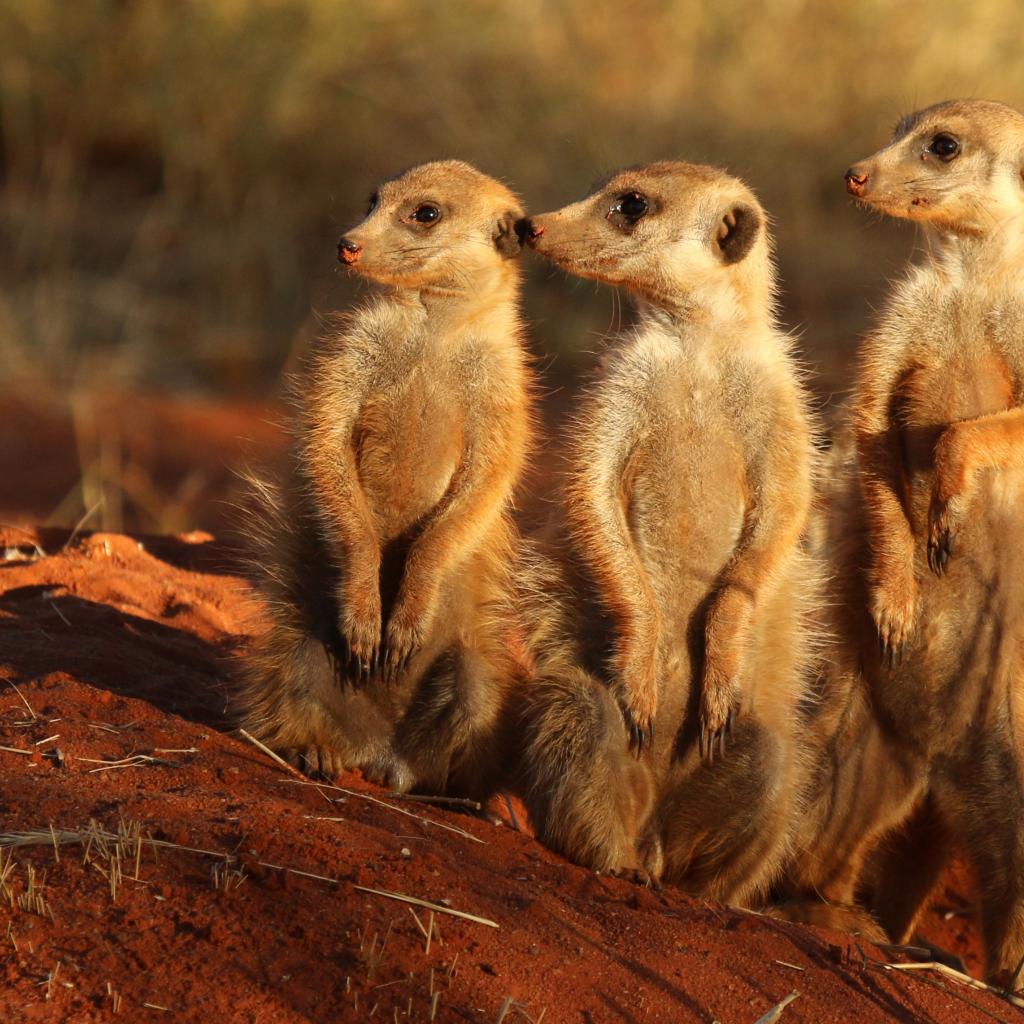 Обои Три суриката в лучах солнца