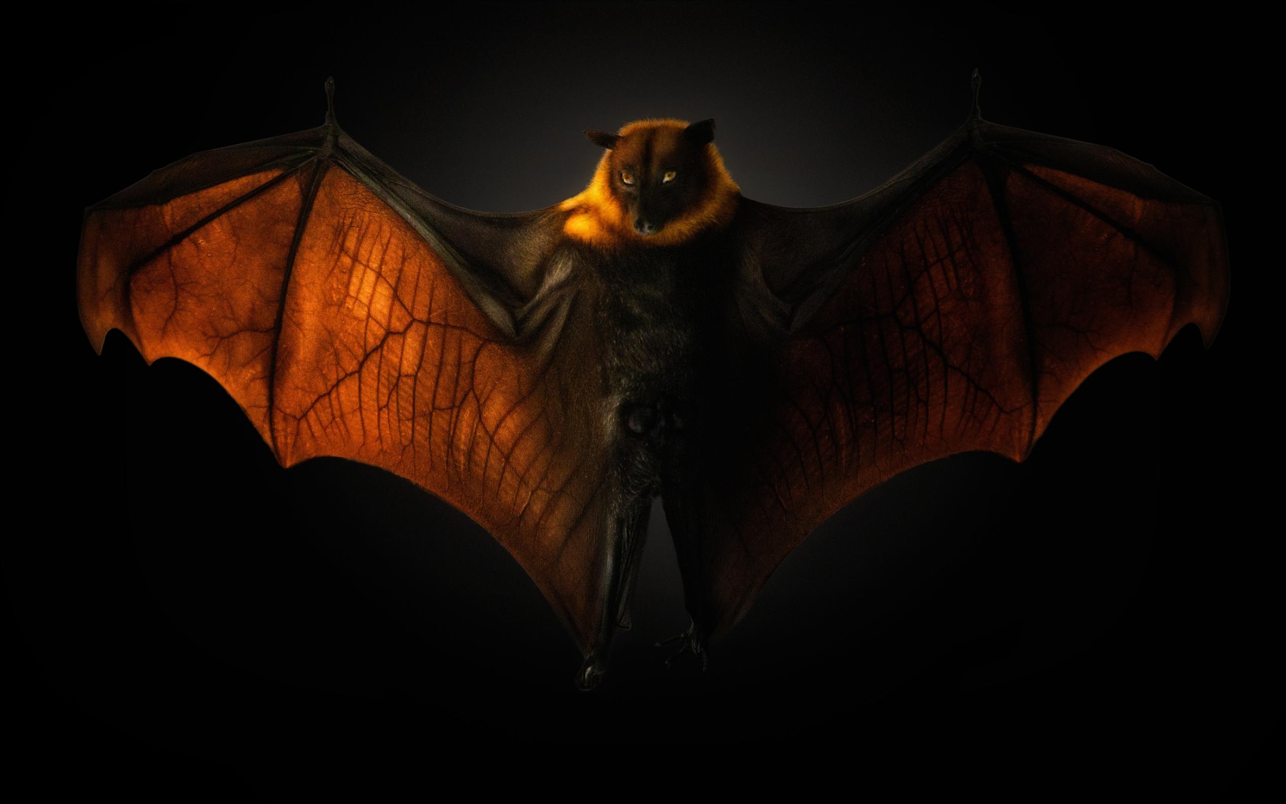Обои Большая летучая мышь на черном фоне