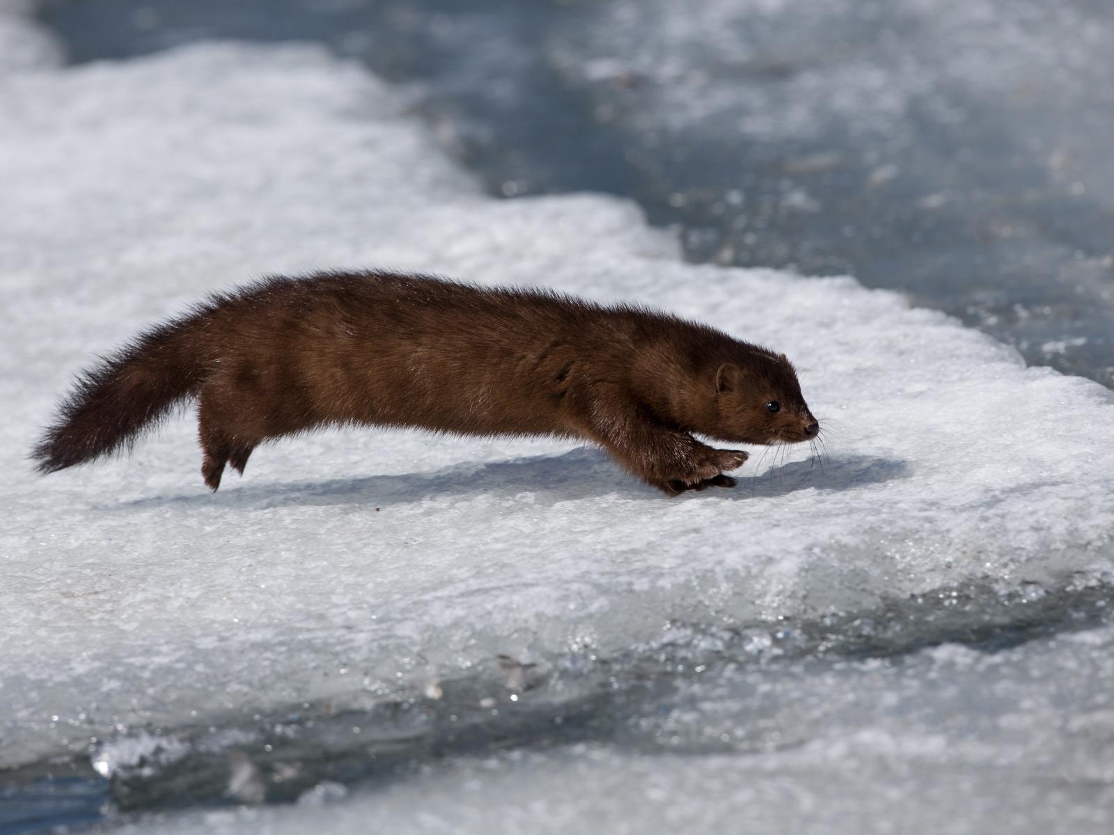 » Обои Хищная куница охотится на льду