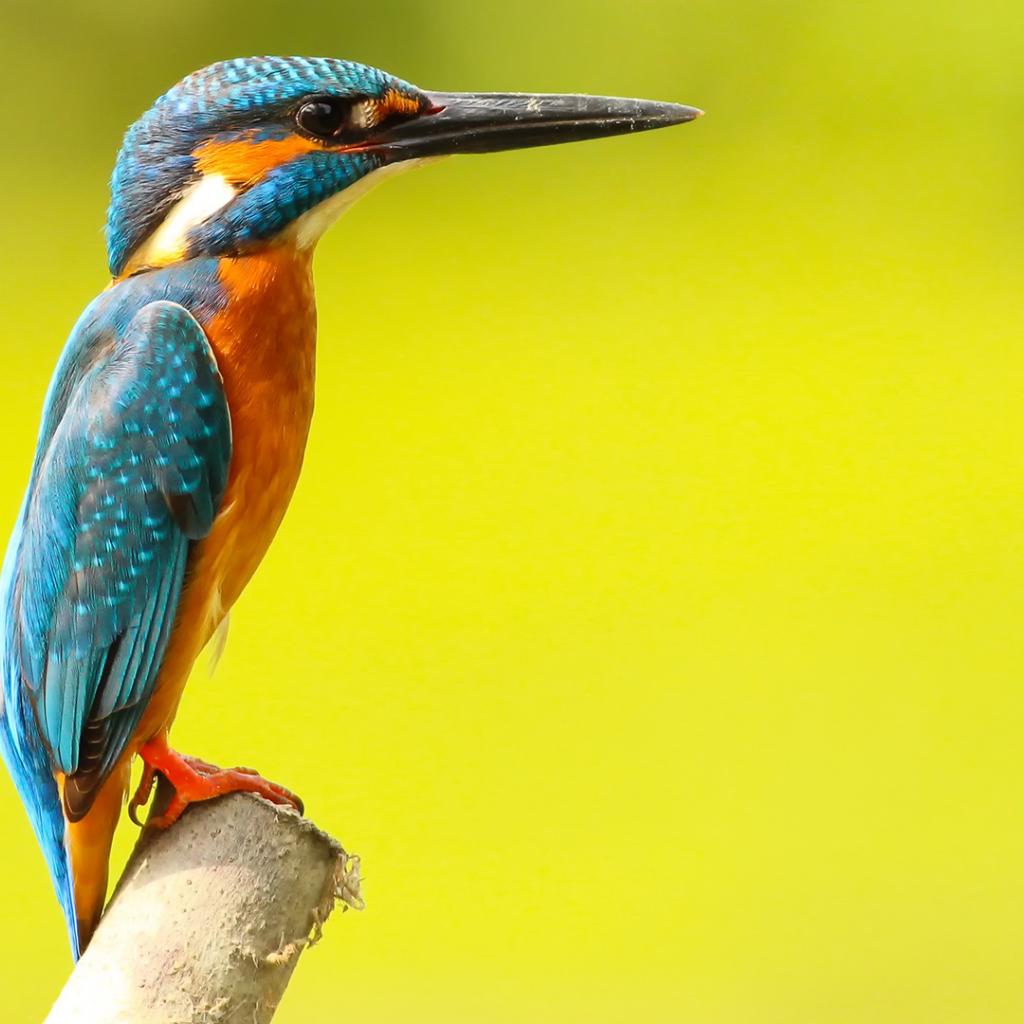 Обои Разноцветная птица зимородок на желтом фоне