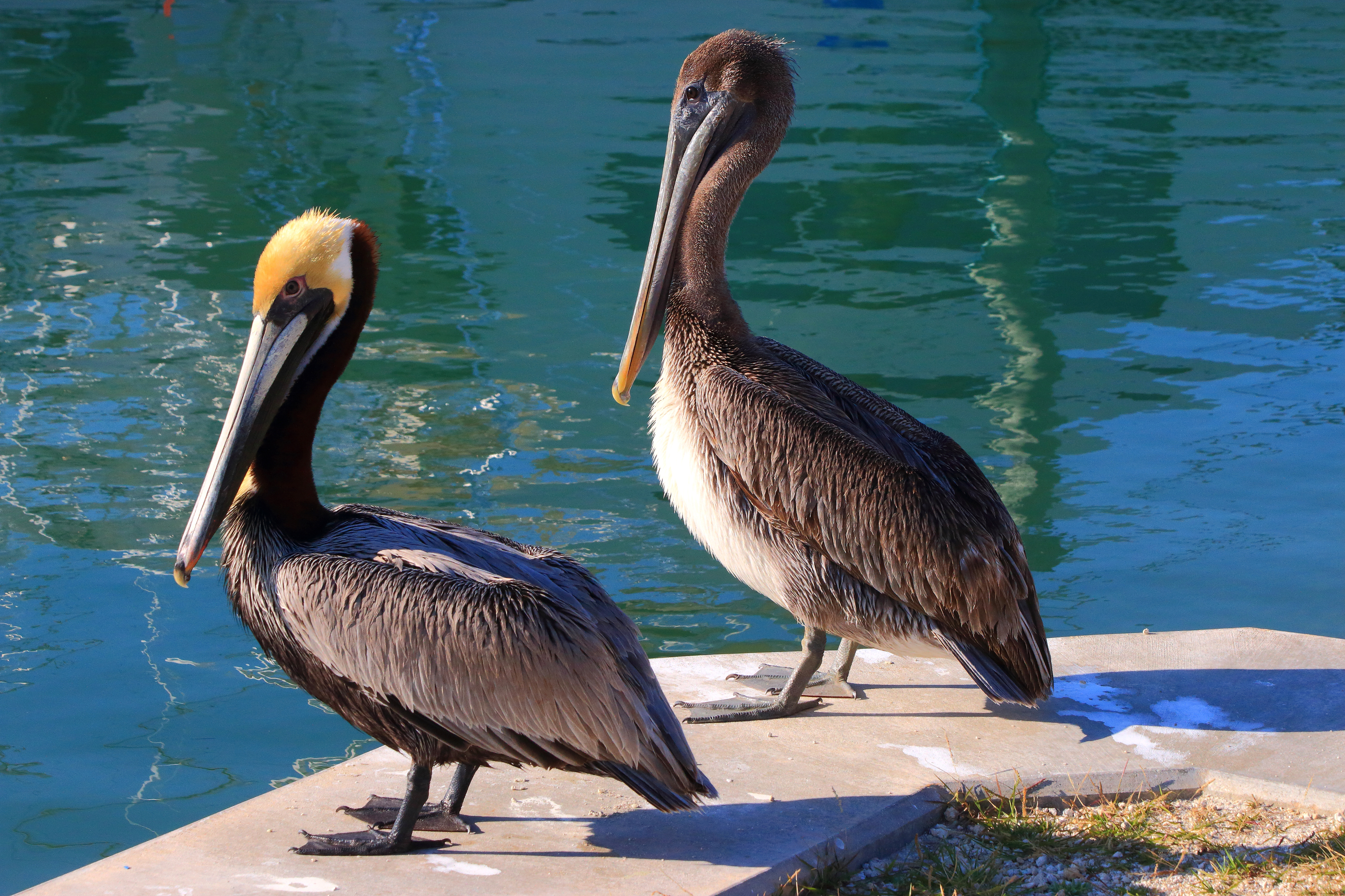 Обои Два больших серых пеликана стоят у воды