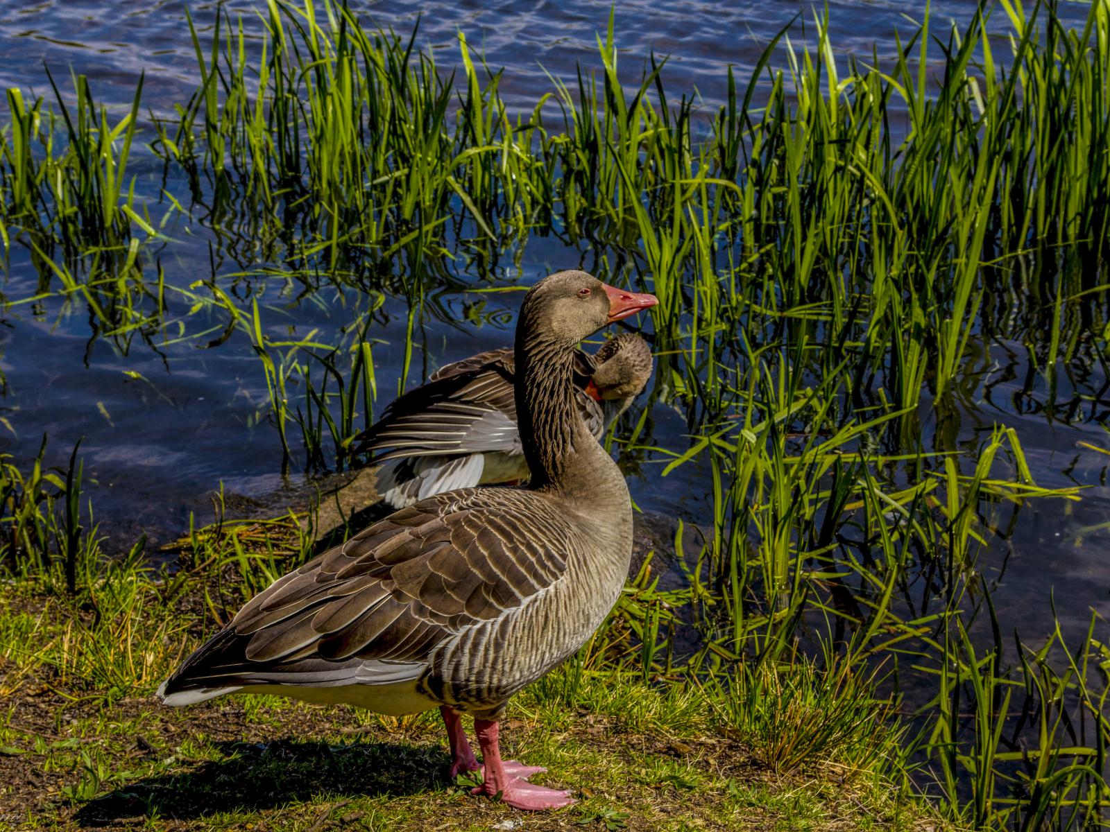 » Обои Два больших серых гуся у водоема