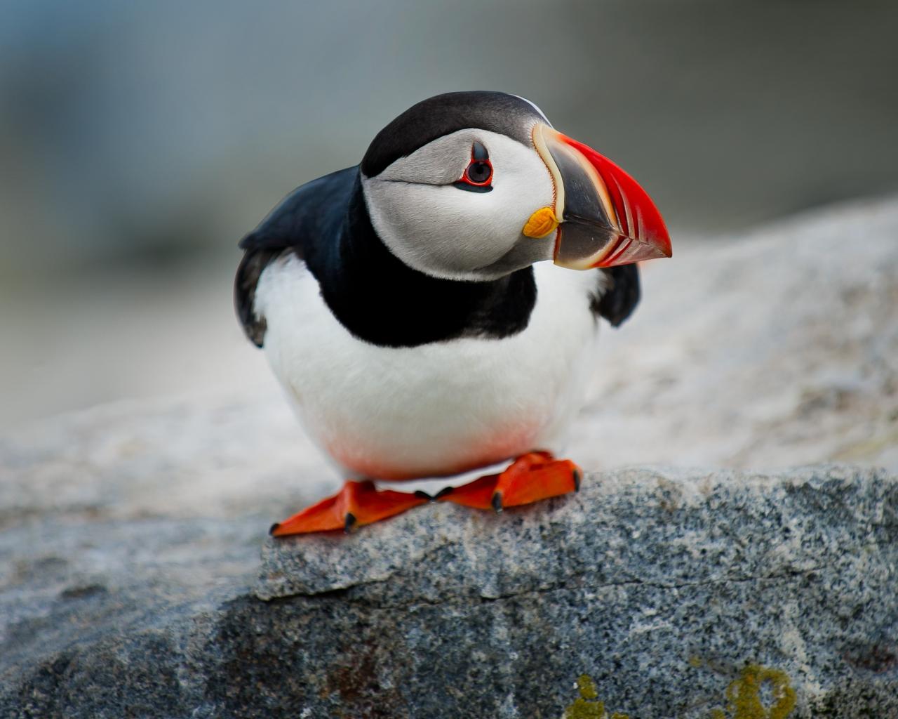 Обои Маленькая птица тупик сидит на камне