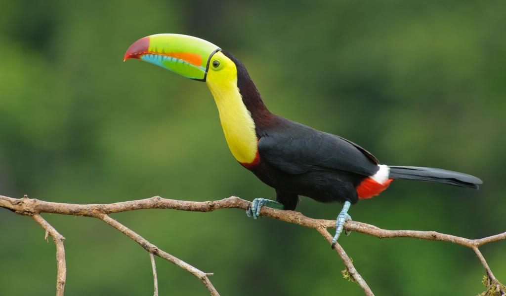 Обои Большая птица тукан сидит на тонкой ветке дерева