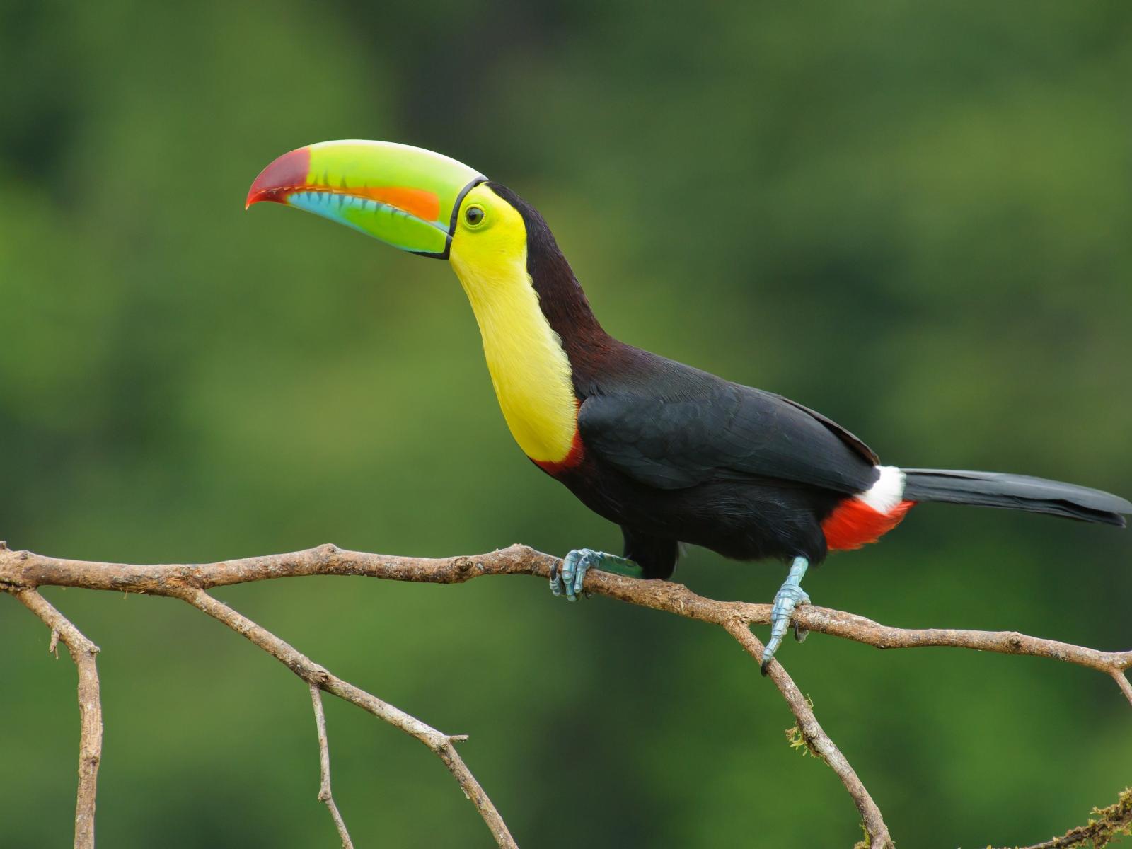 Обои Большая птица тукан сидит на тонкой ветке дерева