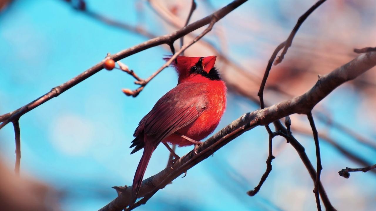Обои Красная птица кардинал на ветке