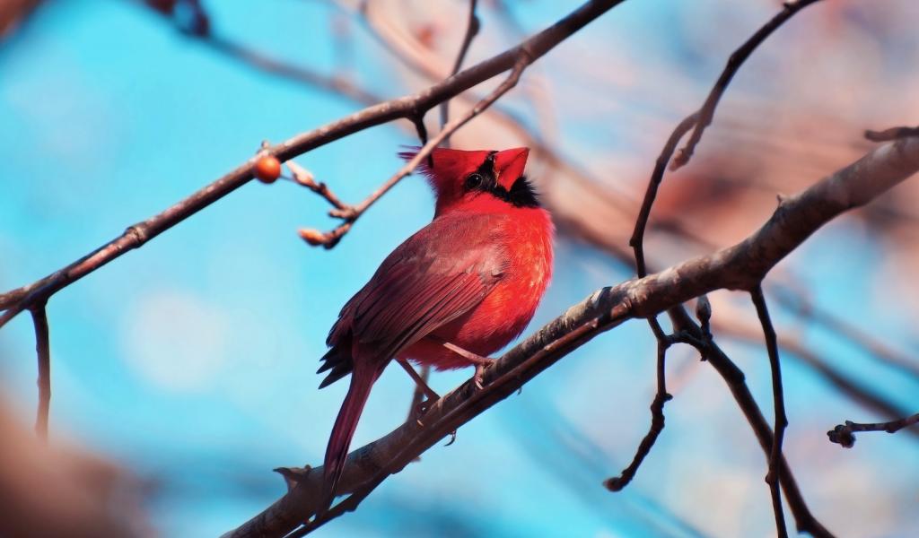 Обои Красная птица кардинал на ветке