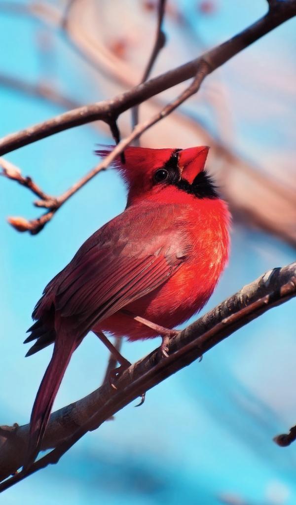 Обои Красная птица кардинал на ветке