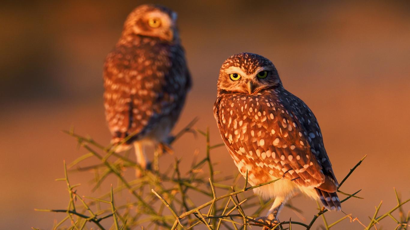 Обои Две большие коричневые совы сидят на ветке