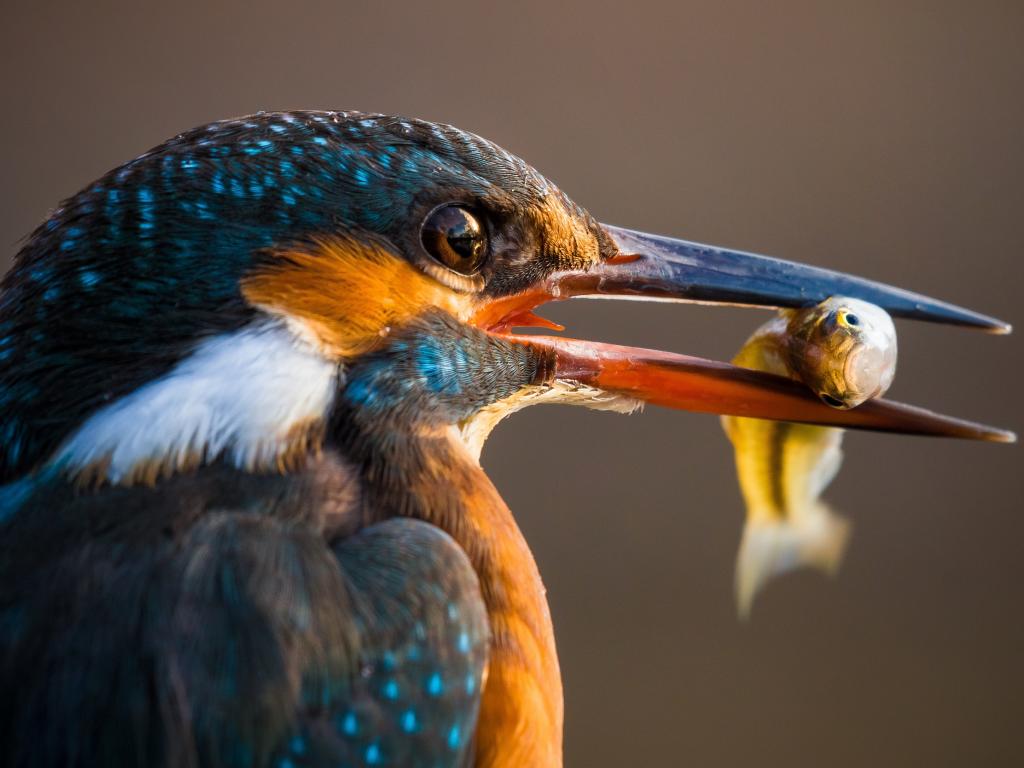 Обои Птица обыкновенный зимородок с рыбой в клюве
