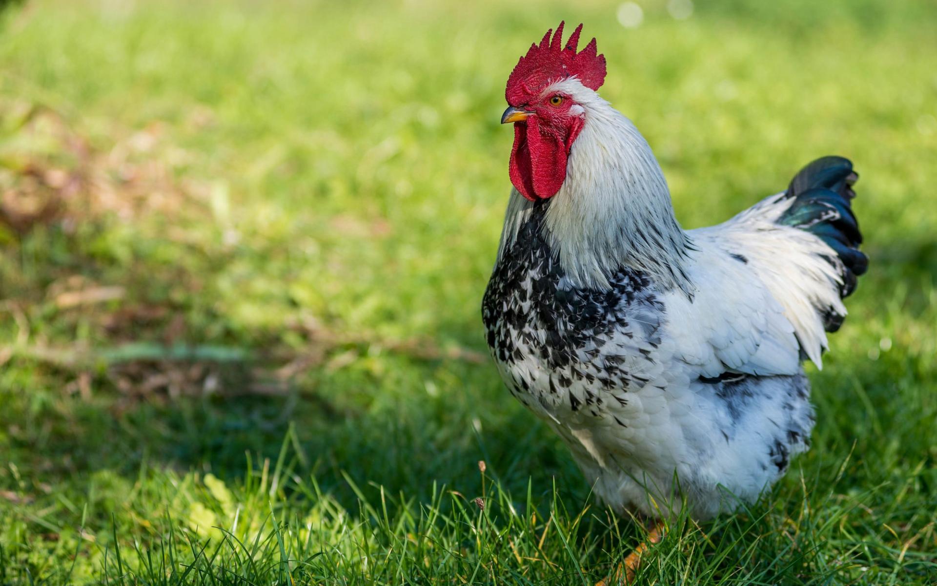 Обои Красивый петух на зеленой траве