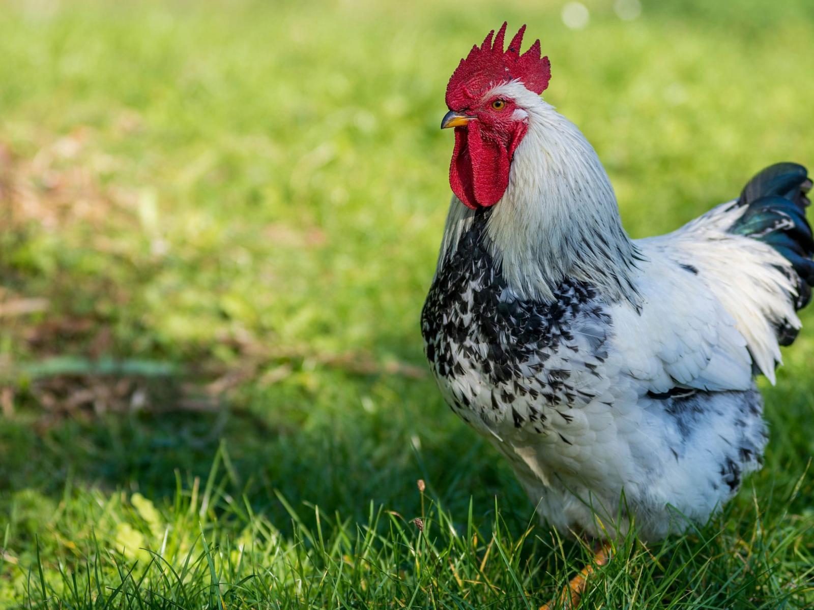 Обои Красивый петух на зеленой траве