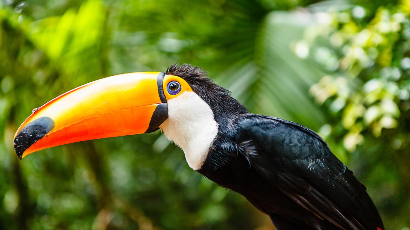 Обои Большой тукан с длинным клювом сидит на ветке